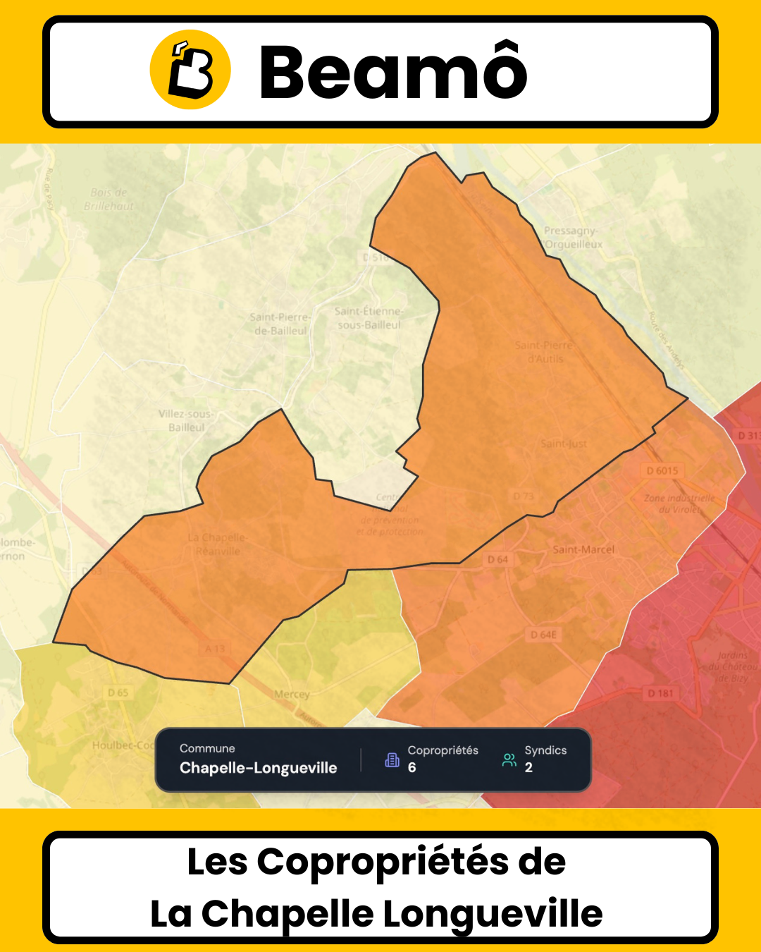Basé en Normandie depuis septembre 2025, Beamô intervient naturellement sur La Chapelle-Longueville et l'ensemble de l'Eure. Spécialisé dans les petites et moyennes copropriétés (5-15 lots), Beamô répond parfaitement au profil du parc chapellois (50% de petites, 33,3% de moyennes) :