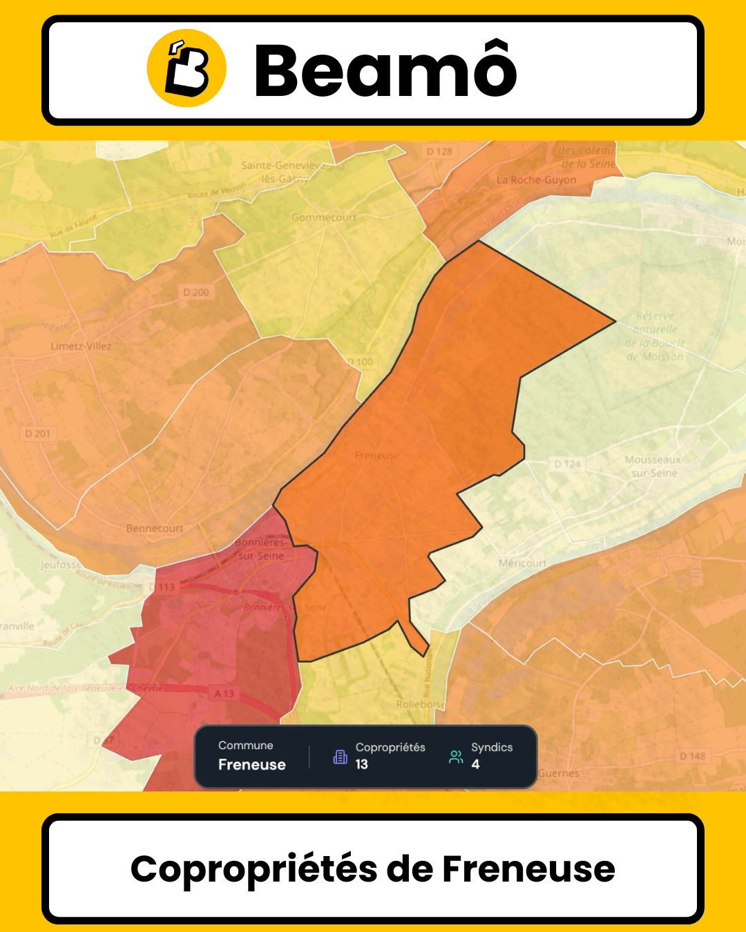 Freneuse et ses copropriétés : le village des grandes résidences bi-générationnelles Avec 13 copropriétés totalisant 725 lots, Freneuse présente un profil unique dans les Yvelines. Selon les données du Registre National des Copropriétés de l'ANAH actualisées en 2025, ce village de bord de Seine se distingue par une caractéristique extraordinaire : 46,2% de grandes copropriétés (51-200 lots), un record absolu parmi toutes les communes analysées. Entre son patrimoine ancien (30,8% d'avant 1949) et ses résidences ultramodernes (30,8% post-2011), Freneuse illustre un cas extrême de discontinuité urbaine : 36 ans sans aucune construction de copropriété (1975-2010). 13 copropriétés : un marché de grandes structures Freneuse, commune de près de 4 000 habitants en vallée de Seine, abrite un parc de copropriétés concentré mais conséquent. Le volume total de 725 lots se répartit ainsi : • Lots d'habitation : environ 277 lots (58,8%) • Lots de stationnement : environ 371 places (27,1%) • Autres lots : environ 77 lots (14,1%) Avec 58,8% de lots d'habitation, Freneuse dépasse nettement la moyenne régionale francilienne (52-54%). La taille des copropriétés : des extrêmes qui cohabitent Les statistiques révèlent un marché polarisé entre micro-copropriétés et grandes résidences. La moyenne s'établit à 55,77 lots par copropriété, proche de la moyenne yvelinoise (67,81 lots). Mais la médiane de 37 lots révèle que la moitié des copropriétés ont moins de 37 lots. Les quartiles précisent cette distribution bimodale : • 1er quartile (Q1) : 5 lots • 3ème quartile (Q3) : 108 lots L'écart-type massif de 53,75 lots témoigne d'une dispersion exceptionnelle : de 2 lots minimum à 140 lots maximum, soit un rapport de 1 à 70 ! Répartition par taille : le record des grandes copropriétés Freneuse affiche une répartition unique : • Petites copropriétés (1-10 lots) : 5 unités, soit 38,5% • Copropriétés moyennes (11-50 lots) : 2 unités, soit 15,4% • Grandes copropriétés (51-200 lots) : 6 unités, soit 46,2% • Très grandes copropriétés (+200 lots) : 0 unité Avec 46,2% de grandes copropriétés, Freneuse détient le RECORD absolu. Ces 6 grandes résidences totalisent probablement 500-600 lots sur les 725 du village, soit plus de 80% du parc ! Le "trou du milieu" (15,4% de moyennes) confirme la polarisation : soit micro (2-10 lots), soit grande résidence (51-140 lots). Un parc bi-générationnel extrême L'âge moyen s'établit à 50 ans, et l'âge médian à 58 ans. Répartition par période de construction Avant 1949 : 4 copropriétés (30,8%) Près d'un tiers du parc date d'avant-guerre. De 1949 à 1960 : 1 copropriété (7,7%) De 1961 à 1974 : 2 copropriétés (15,4%) De 1975 à 2010 : 0 copropriété (0%) 36 ANS DE VIDE ABSOLU. À partir de 2011 : 4 copropriétés (30,8%) LE RÉVEIL BRUTAL. En quelques années (2011-2025), Freneuse a construit autant de copropriétés (4 unités, 30,8%) que pendant toute la période d'avant 1949. Le profil "haltère" unique La distribution chronologique ressemble à un haltère : • Masse 1 : 30,8% avant 1949 (patrimoine ancien) • VIDE : 0% entre 1975-2010 (36 ans) • Masse 2 : 30,8% post-2011 (boom récent) Les deux périodes actives représentent EXACTEMENT le même pourcentage (30,8%), créant une symétrie parfaite. Le marché des syndics : l'opacité domine Répartition par mode de gestion • Syndics professionnels : 3 copropriétés (23,1%) • Syndics bénévoles : 1 copropriété (7,7%) • Statut inconnu : 9 copropriétés (69,2%) Avec 23,1% de gestion professionnelle, Freneuse affiche un taux de professionnalisation parmi les plus bas. La zone grise de 69,2% (9 copropriétés sur 13 !) constitue un record relatif. Le stationnement : le confort relatif du périurbain Le ratio parking/logement de 0,78 place Freneuse dans la moyenne haute yvelinoise. La médiane parking de 4 lots indique que 50% des copropriétés ont au moins 4 places. Mais la moyenne de 28,54 places révèle l'impact des grandes résidences modernes. Les quartiles parking illustrent cette disparité : • Q1 : 0 lot — 25% des copropriétés n'ont AUCUN parking (le patrimoine ancien) • Q3 : 70 lots — les grandes résidences récentes Freneuse face aux Yvelines et l'Île-de-France Taille moyenne des copropriétésTerritoireMoyenneMédianeFreneuse55,77 lots37 lotsYvelines (78)67,81 lots24 lotsÎle-de-France60,10 lots31 lots Freneuse affiche une médiane NETTEMENT supérieure (37 vs 24 lots). Cette inversion signale la présence de nombreuses grandes copropriétés. La copropriété frénôise "type" Il est impossible de définir UNE copropriété type à Freneuse. Voici les DEUX profils : Profil A - Le patrimoine ancien (38,5%) : • 2-10 lots, 0 parking, avant 1949 (75+ ans), centre-bourg, zone grise Profil B - La grande résidence moderne (46,2%) : • 51-140 lots, 40-76 parkings, post-2011 (10-15 ans), périphérie, gestion pro Vivre en copropriété à Freneuse : deux mondes parallèles En bord de Seine, entre Paris et Rouen Située à 70 km de Paris et 90 km de Rouen, Freneuse bénéficie d'un positionnement stratégique en vallée de Seine. La gare de Mantes-la-Jolie est à 15 minutes en voiture, offrant un accès direct à Paris-Saint-Lazare en 40 minutes. Ce positionnement attire actifs en télétravail, familles fuyant les prix franciliens, retraités recherchant le calme. Le boom des grandes résidences post-2011 Avec 4 copropriétés construites après 2011 (30,8%), Freneuse a connu une transformation radicale. Ces grandes résidences ont probablement triplé le nombre de logements collectifs. Pour les nouveaux copropriétaires de ces résidences modernes : • Confort : isolation RT 2012, parkings abondants, équipements récents • Charges maîtrisées : bâtiments jeunes (10-15 ans) = peu de travaux avant 10-20 ans Mais aussi : • Décisions lentes : 50-140 copropriétaires = AG compliquées •