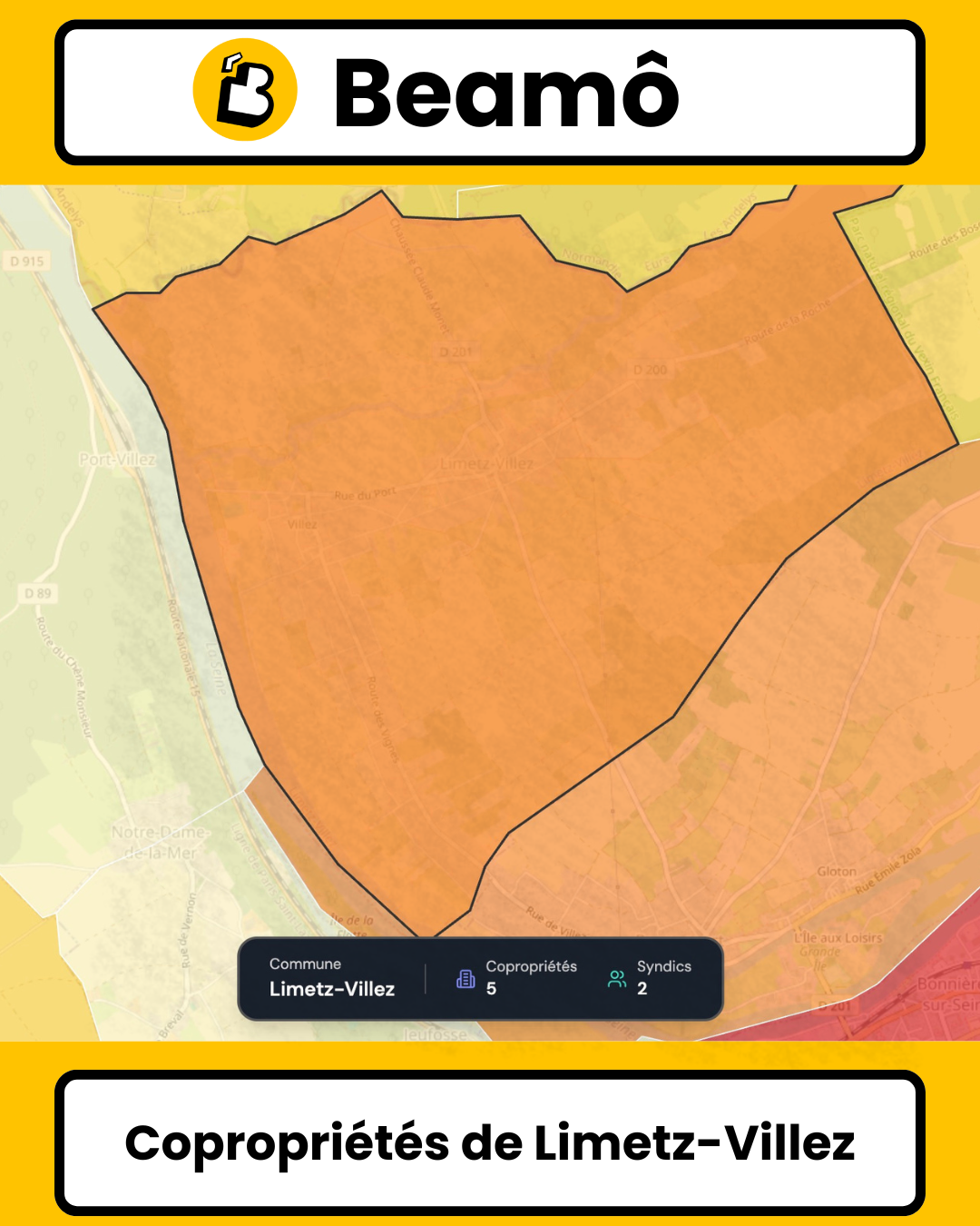 Bien que Beamô soit basé en Normandie (Eure), l'entreprise intervient naturellement sur les Yvelines limitrophes comme Limetz-Villez. Spécialisé dans les petites et moyennes copropriétés (5-15 lots), Beamô répond parfaitement au profil du parc limetzois (40% de petites, 60% de moyennes) :