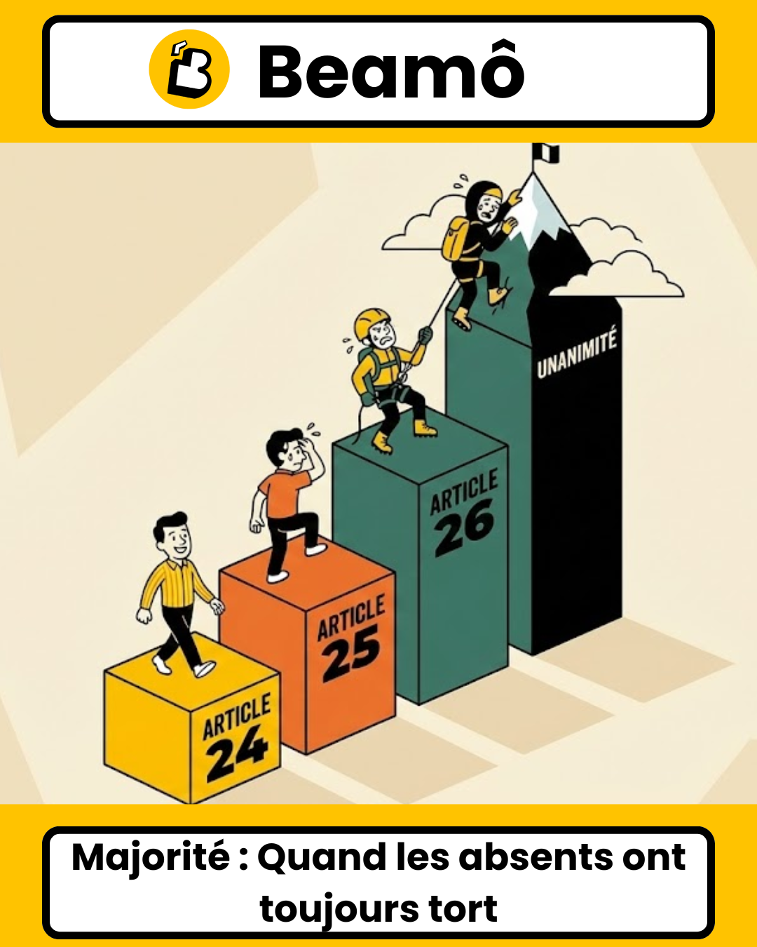 Article 24, article 25, double majorité, passerelle... Si vous avez déjà assisté à une assemblée générale de copropriété, vous avez sûrement entendu ces termes sans vraiment comprendre ce qu'ils signifient. Et avouons-le : quand le syndic annonce "la résolution est adoptée à la majorité de l'article 25", la moitié de la salle hoche la tête en faisant semblant d'avoir suivi.